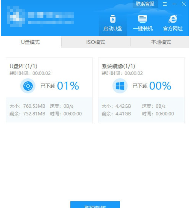 4、然后云騎士就開始進行系統的下載,同時,若想換一個系統下載,則可以點擊取消制作,進行取消更換,在這里下載的系統文件較大,請大家耐心等待