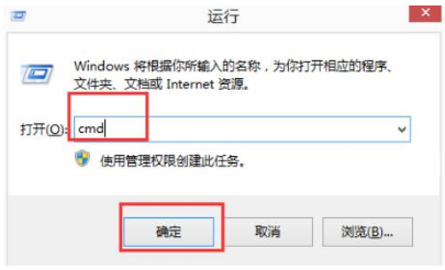 2、在運行窗口頁面中,輸入:cmd,打開管理員頁面。