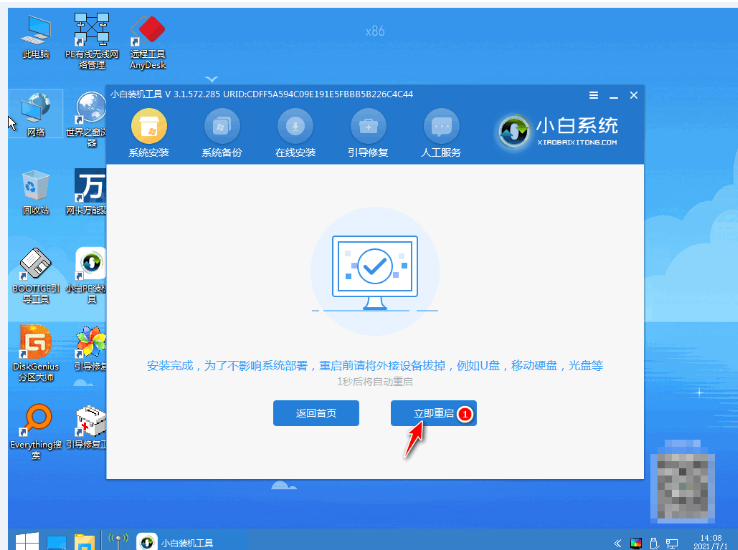 4、提示啟動U盤制作完成后點擊重啟電腦。