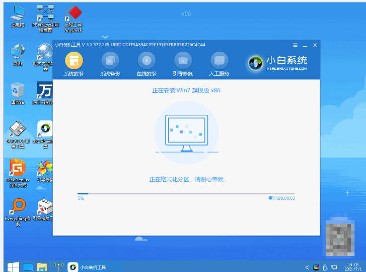 6、進入pe系統之后,進入小白軟件,耐心等待軟件安裝系統。