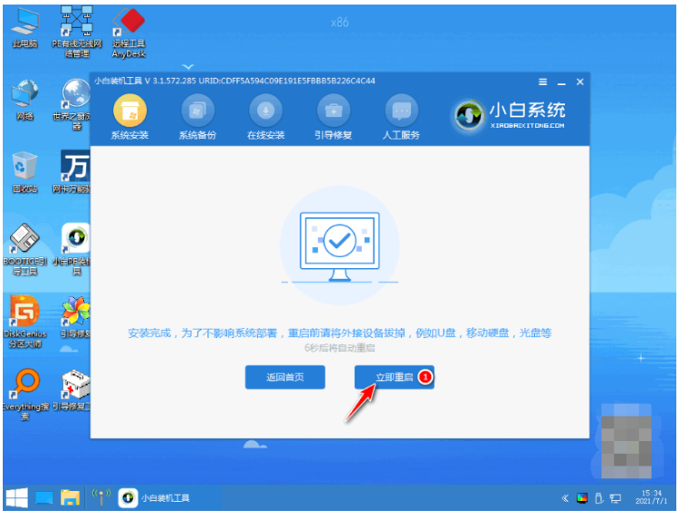 6、小白裝機工具系統安裝完成后,再次點擊立即重啟電腦。
