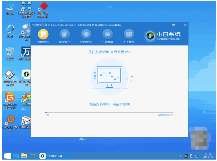 5、小白裝機工具這時將會自動開啟并自動安裝系統,請耐心等待系統的安裝。