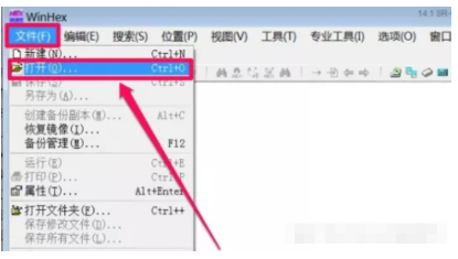 2、如果不是純文本的話,有可能就是亂碼。這時候我們就需要我們下載WinHex工具將其打開。打開WinHex工具,選擇左上方的文件,點擊打開。打開窗口界面中選擇需要打開的dat文件即可。