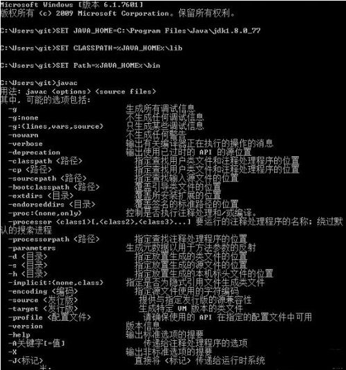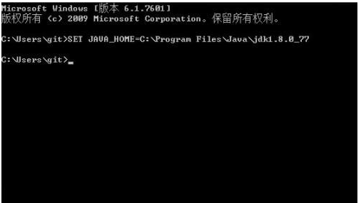 2、接著輸入:SET JAVA_HOME=C:\Program Files\Java\jdk1.8.0_77,自己要按照自身的jdk安裝文件目錄來開展填好。