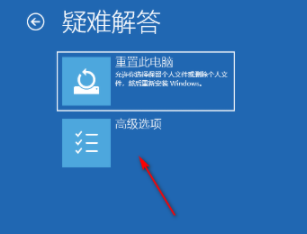 2、點擊疑難解答,選擇高級選項。