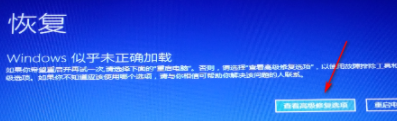 1、首先我們按下開機鍵,等待出現微軟logo,強制關機三次,點擊“查看高級修復選項”進入高級啟動界面。