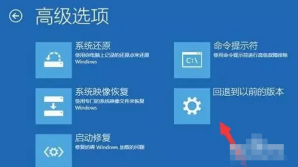 3、點擊回退到以前的版本,這時win10電腦會自動重啟并進行回退操作。