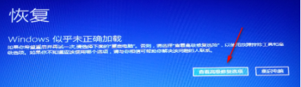 1、按下開機鍵,等待出現微軟logo,強制關機三次,點擊“查看高級修復選項”進入高級啟動界面。