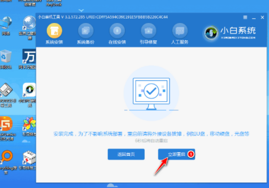 7.安裝完成后拔出u盤,雙擊【立即重啟】。