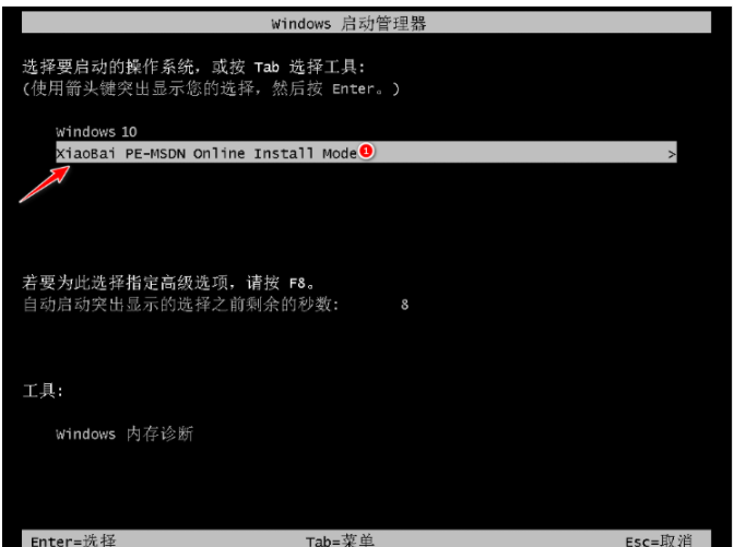 4、系統安裝完成后,再次點擊重啟電腦,選擇新安裝好的windows10系統。