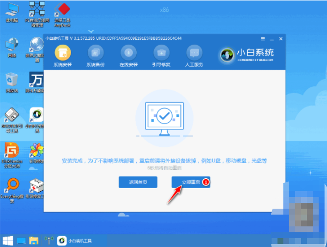 6、系統安裝完成后,再次點擊立即重啟電腦。