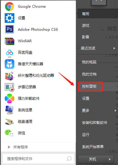 1、鼠標點擊【開始】菜單,接著選擇系統的【控制面板】打開。