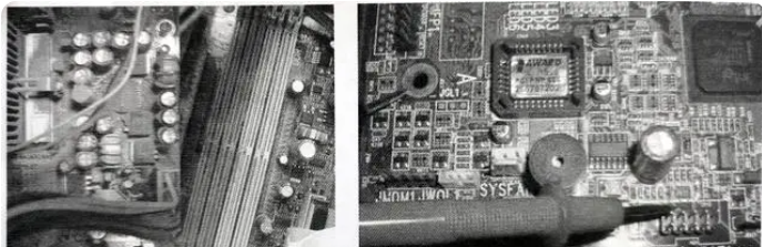 在檢查主板有沒有物理損害的時候,首先要檢查電路板、芯片等是否有燒焦或者劃痕,電容等電子器件是否有開焊或者爆漿的現象。對于集成度很高、布滿各種器件的主板來說,檢查起來確實麻煩,但這卻是最有效的方法之一。
