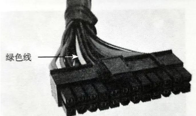 排除電源問題的方法是:打開機箱,拔下主板 ATX電源接口連線,然后用鑷子或導線連接 ATX 電源接口中的綠線和任意一根黑線,如果電源風扇轉動,說明電源工作正常,如下圖。