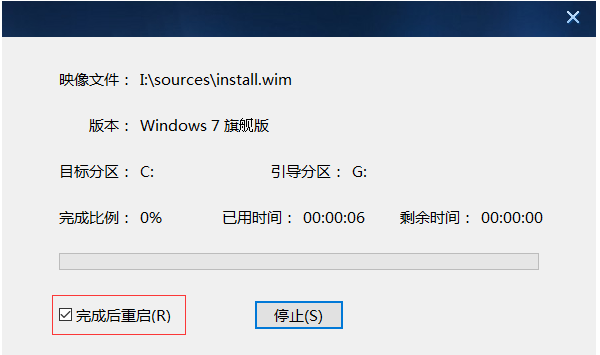 5.等軟件安裝完成后重啟電腦。注意:重啟前必須拔掉U盤,避免重新再次進入晨楓pe界面。