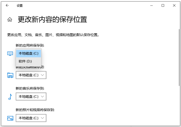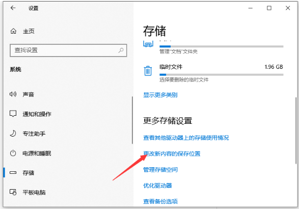 1、參考方法二來到存儲的界面,找到更改新內存保存位置。
