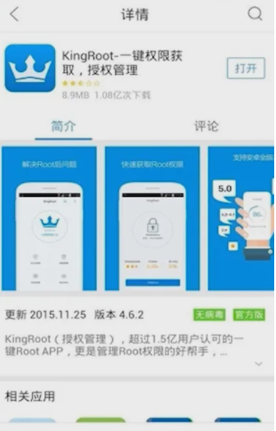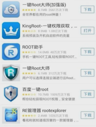 方法二:root權限開啟第一步,打開手機的應用商店,搜索關鍵詞“root”