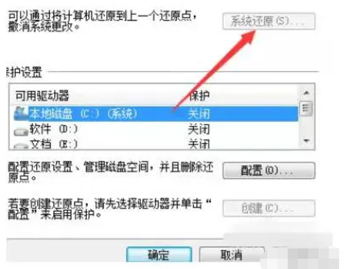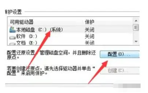 4、然后給電腦配置選擇一個磁盤作為還原點,選定后點擊配置。