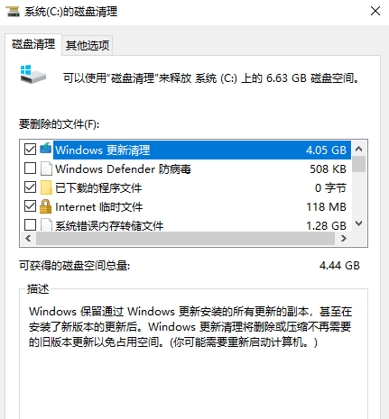 6、最后點擊【清理系統文件】,找到【Windows 更新清理】、【臨時文件】,進行刪除即可。