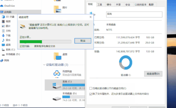 5、接著打開電腦 C 盤,右鍵選擇【屬性】,點擊【磁盤清理】,電腦會自動計算可釋放的空間。