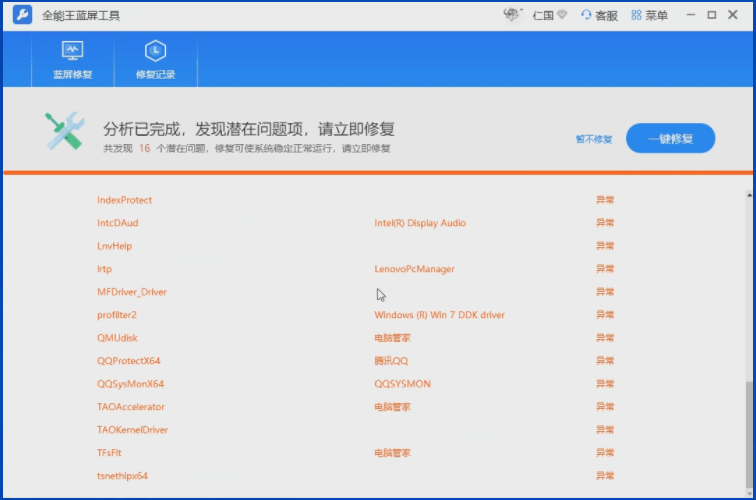 3、耐心等待軟件分析完成后,點擊一鍵修復,這是我們就完成修復電腦藍屏了。