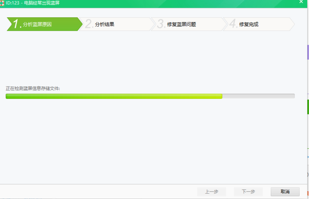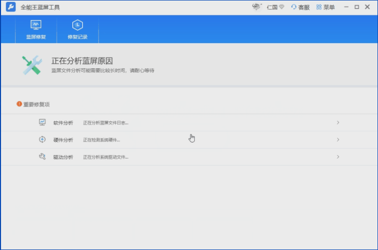 2、點擊一鍵修復,這時軟件會自動分析藍屏原因。