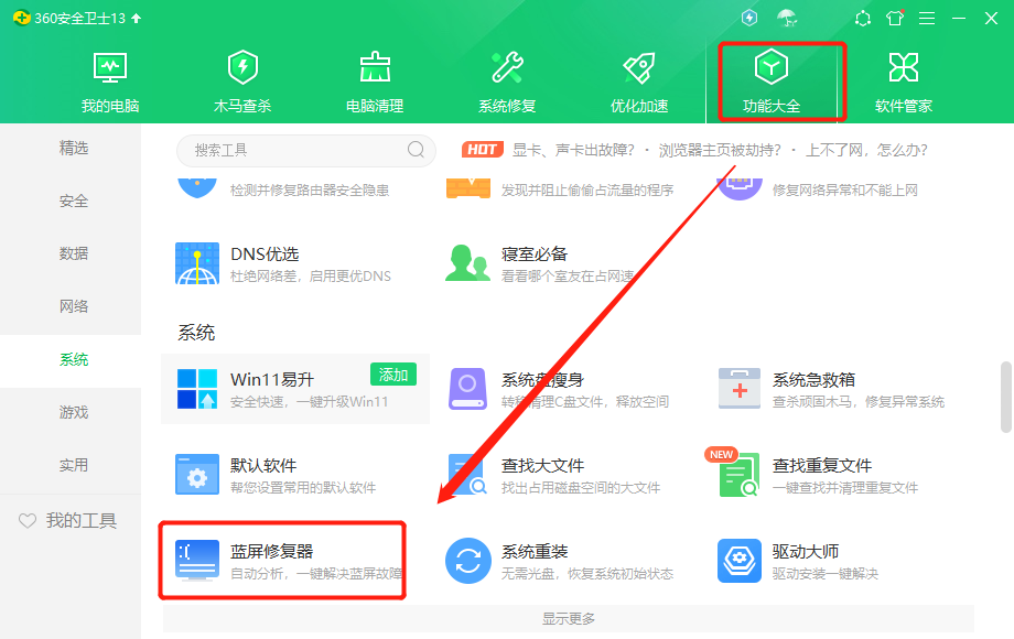 注意事項:如果修復完成后還是會藍屏,那么是電腦硬件出現問題,需要送到線下電腦維修店進行更換硬件。