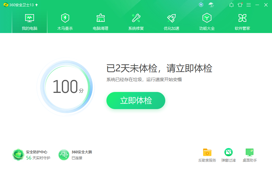 1、我們在360安全衛士官網下載好軟件后,正常打開軟件。