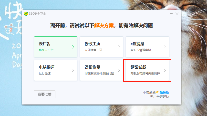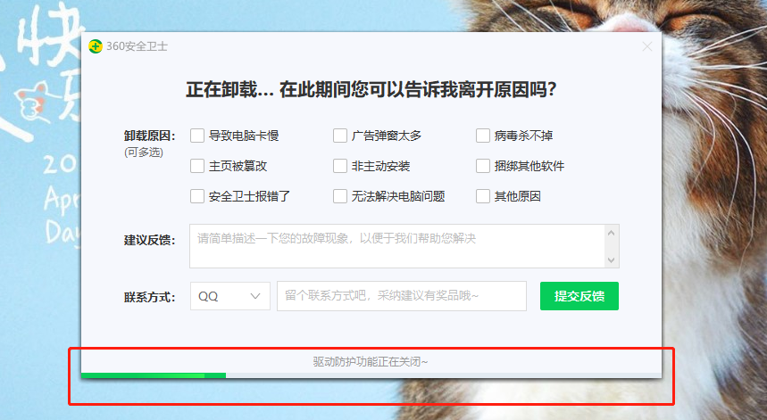 6、選擇感謝使用,再見。這時可考慮重啟電腦,幫助徹底卸載360安全衛士。