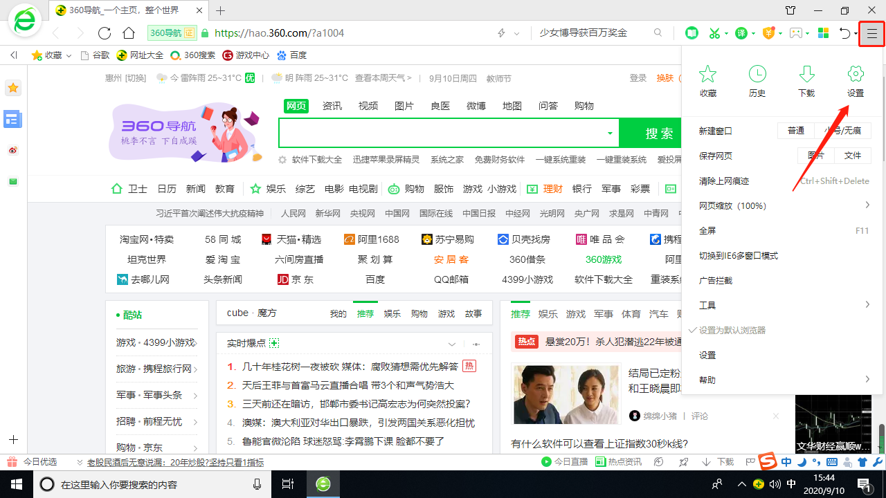 1、瀏覽器如何徹底刪除360網址導航呢?點擊打開360瀏覽器,進入設置。