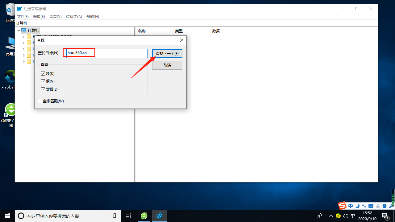 8、耐心等待注冊表搜索完成后,將這些項次全部刪除,再到安裝瀏覽器的目錄下重新添加瀏覽器快捷方式。