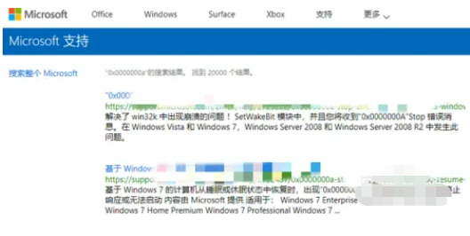 在代碼查詢頁面點擊【搜索】,會跳轉到微軟的官網,我們可以在微軟官網內查找相關的藍屏信息。