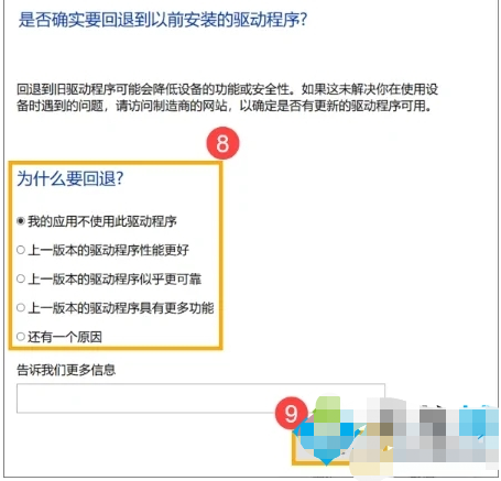3.點擊“驅動程序”,并選擇“回退驅動程序”;