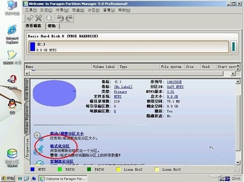2、操作方法也很簡單,選中C盤,在下面有格式化分區的 選項,或在硬盤分區上右鍵,也有格式化的選項。