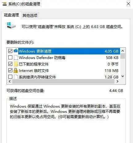 3.點擊【清理系統文件】,找到【Windows 更新清理】、【臨時文件】,進行刪除即可。