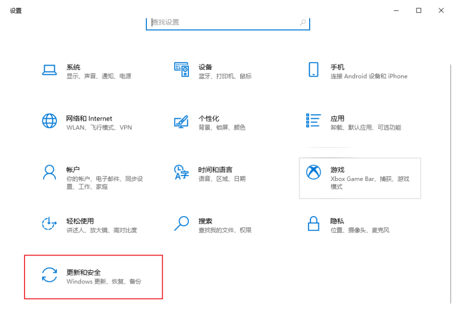 1、通過快捷鍵win+i開啟設置,點擊更新和安全。