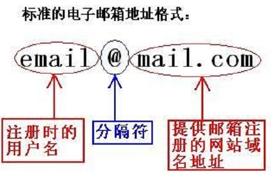 電子郵箱主要由3部分組成,分別為用戶名、“@主機名”、郵箱的服務域名。電子郵箱一般有固定的通用格式,即 user@host.domainnames,中文的格式就是:用戶名@主機名.域名。
