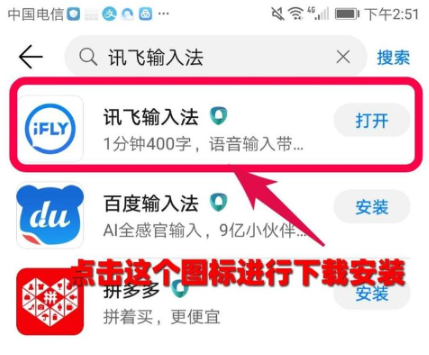 3、訊飛輸入法的圖標是圖示樣子,點擊這個圖標進行下載,下載好了再點擊安裝。