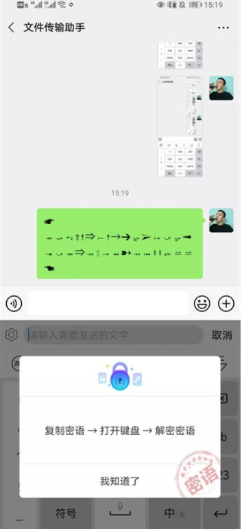 3、復制好密語后,只需要再次點擊打開輸入框,訊飛輸入法即可自動進行解密(密語模式必須打開)。