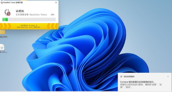 6.電腦多次重啟后,進入Win11系統,電腦會自動更新Parallels Tools,耐心等待一分鐘即可。