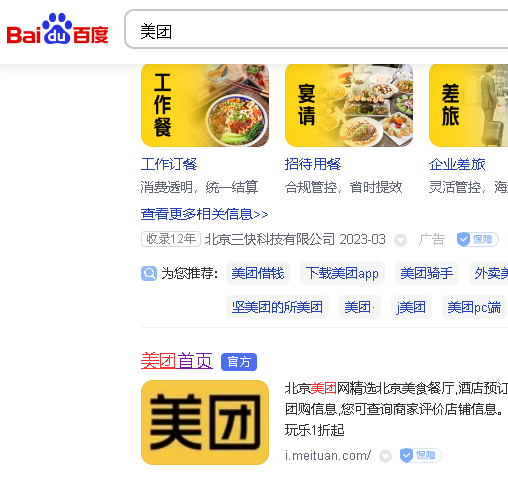 1、打開任意瀏覽器,在搜索框中輸入美團進行搜索,然后點擊美團的官方網站進入。