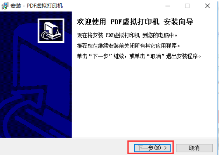 1、首先在網上搜索并下載PDF虛擬打印機軟件包,解壓后運行exe文件,進入安裝向導界面,點擊下一步。