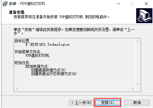 5、進入PDF虛擬打印機準備安裝界面,直接點擊安裝.