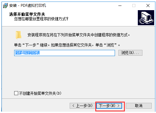 2、同意相關協議,進入PDF虛擬打印機安裝位置選擇界面,一般默認安裝到C盤或者點擊瀏覽選擇其他安裝位置,點擊下一步。
