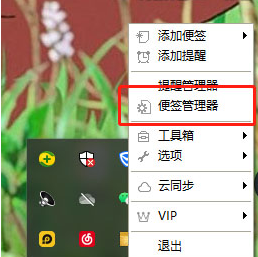 1、打開電腦,點擊右下角的小圖片,點擊便簽管理器。
