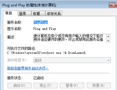 3、 在打開Plug and Play選項窗口后,在常規欄目下,將下面的啟動類型修改為自動,最后確定保存下設置就可以了。