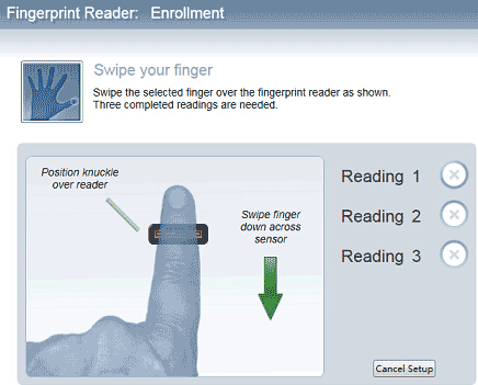 4、最后要做的就是根據電腦提示將相應的手指指紋放到掃描器上進行識別,一切等系統完成提示后,那么指紋識別系統設置就完成了。