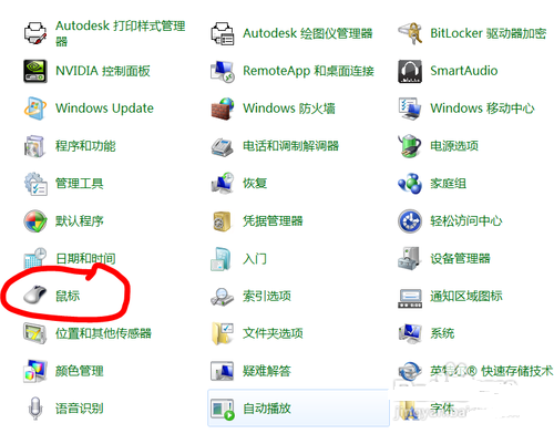 2、 接著在控制面板里面找到“鼠標”,并且點擊打開。