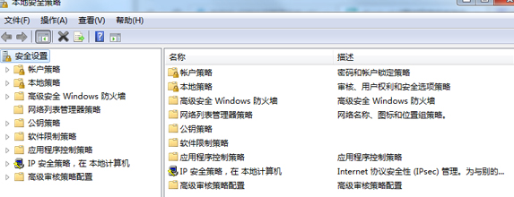 以下就是本地安全策略設置界面,在這里就能對win7系統里面更多帳號進行安全設置了。