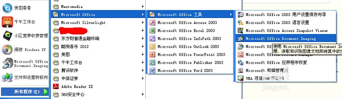 3、 接著打開“Microsoft Office”里面的“Microsoft Office工具”,并且選擇“Microsoft Office Document Imaging”。